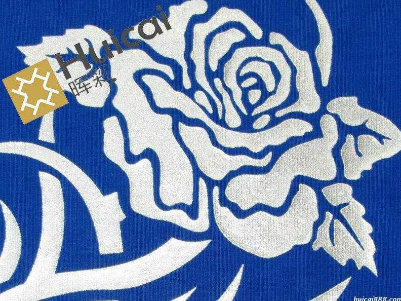 仿烫银浆跟仿烫金浆是同一类印花浆料,辉彩仿烫银浆有特亮特柔软的特点,在光照下发出珍珠般的光泽,点缀出光彩夺目的印化图案,适用于棉印布、T / C布、针织等。