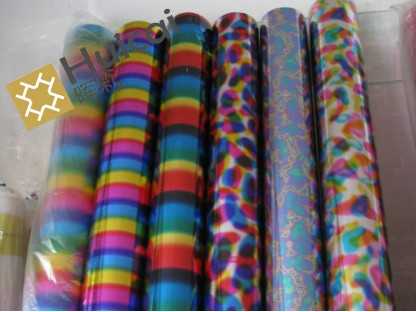 七彩烫金纸广泛应用于服装布料印花、烫印烟盒、酒盒、化妆品盒、礼品、茶盒、台历、贺卡等印刷包装上