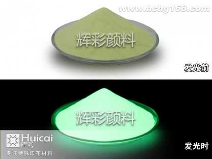 1、黄绿光防水夜光粉不需电源支持,可自动吸收任何光源,并在黑暗处自动发光;