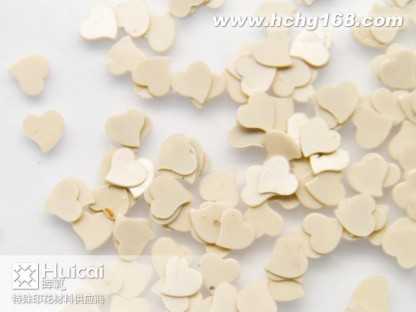 金葱粉:又名闪光片。包括铝质金葱粉,聚酯金葱粉幻彩粉,镭射金葱粉等。有铝质,PETPVC材质。大小规格(size)由1/25601mm)至1/830mm)。形状有六角形,四角形,长条针形和不规则形状,并有多种颜色可供选择。各种材质金葱粉可不同程度承受高温(由80*C180*C300*C不等) 。