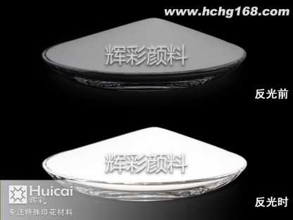 1、先用胶水打底一次 → 2、用银粉与胶水搅拌均匀印第二次 → 3、直接印反光粉(不用加胶水),→用平压机将反光粉压入胶水的半径厚度即可。