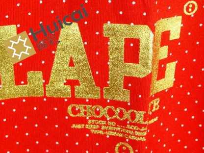 2、再将对应烫布料、织物的烫金箔烫在烫金浆上,普通金银纸色的烫印温度为120°C左右,镭射烫金纸的烫印温度为130°C,时间均为15秒,(烫印时间、温度可自行调整,以烫印效果不变色为准)。